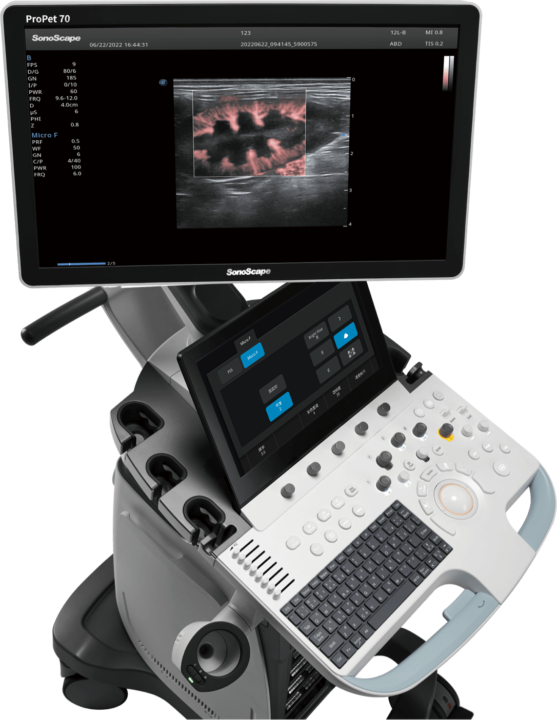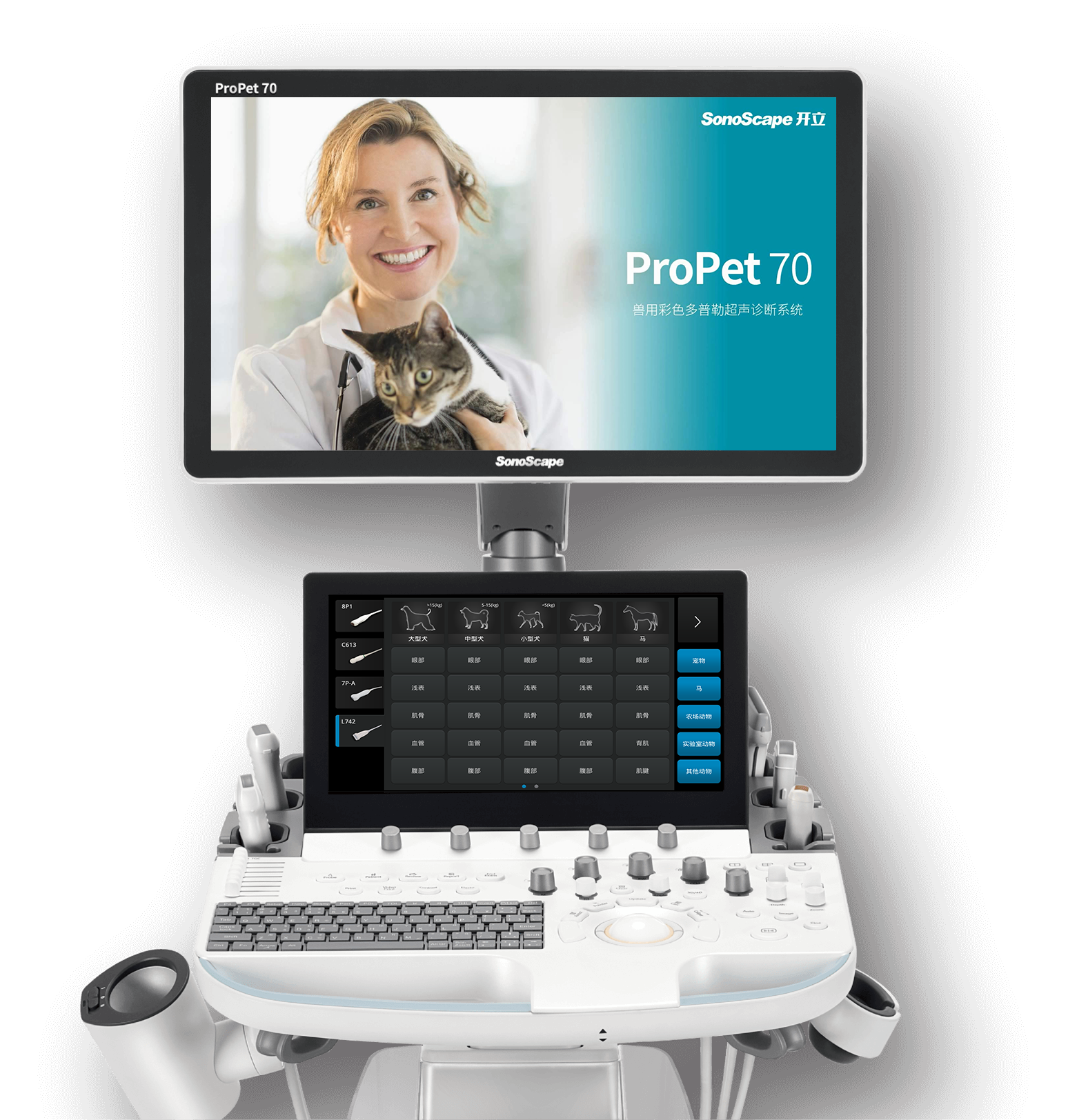 ProPet 70 全新的動(dòng)物超聲智能軟件和豐富的探頭群,為動(dòng)物醫(yī)生提供了高清晰度和精細(xì)分辨率的圖像,無論在寵物、馬科、畜牧還是實(shí)驗(yàn)室動(dòng)物等應(yīng)用中都可以輕松應(yīng)對(duì),為您的日常工作帶來滿意的體驗(yàn)。