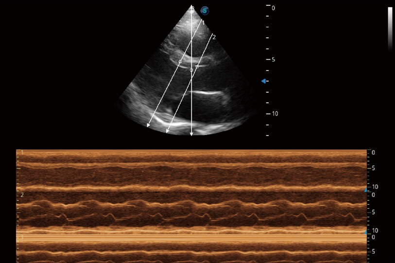 通過360度任意調(diào)節(jié)3條M型取樣線,在同一心動(dòng)周期上觀察心臟不同位置的運(yùn)動(dòng)曲線,得到準(zhǔn)確的心功能測(cè)量數(shù)據(jù),有效評(píng)估心肌運(yùn)動(dòng)及左心室功能。