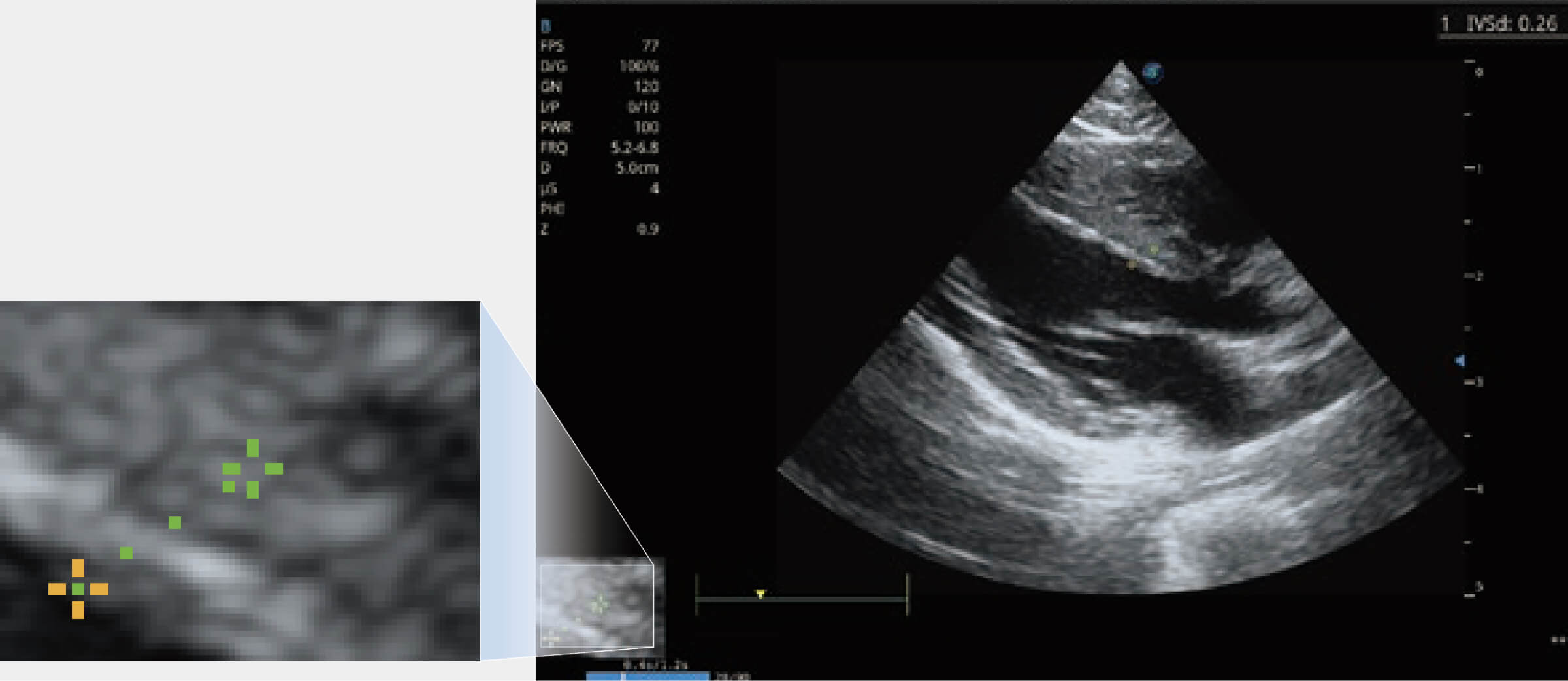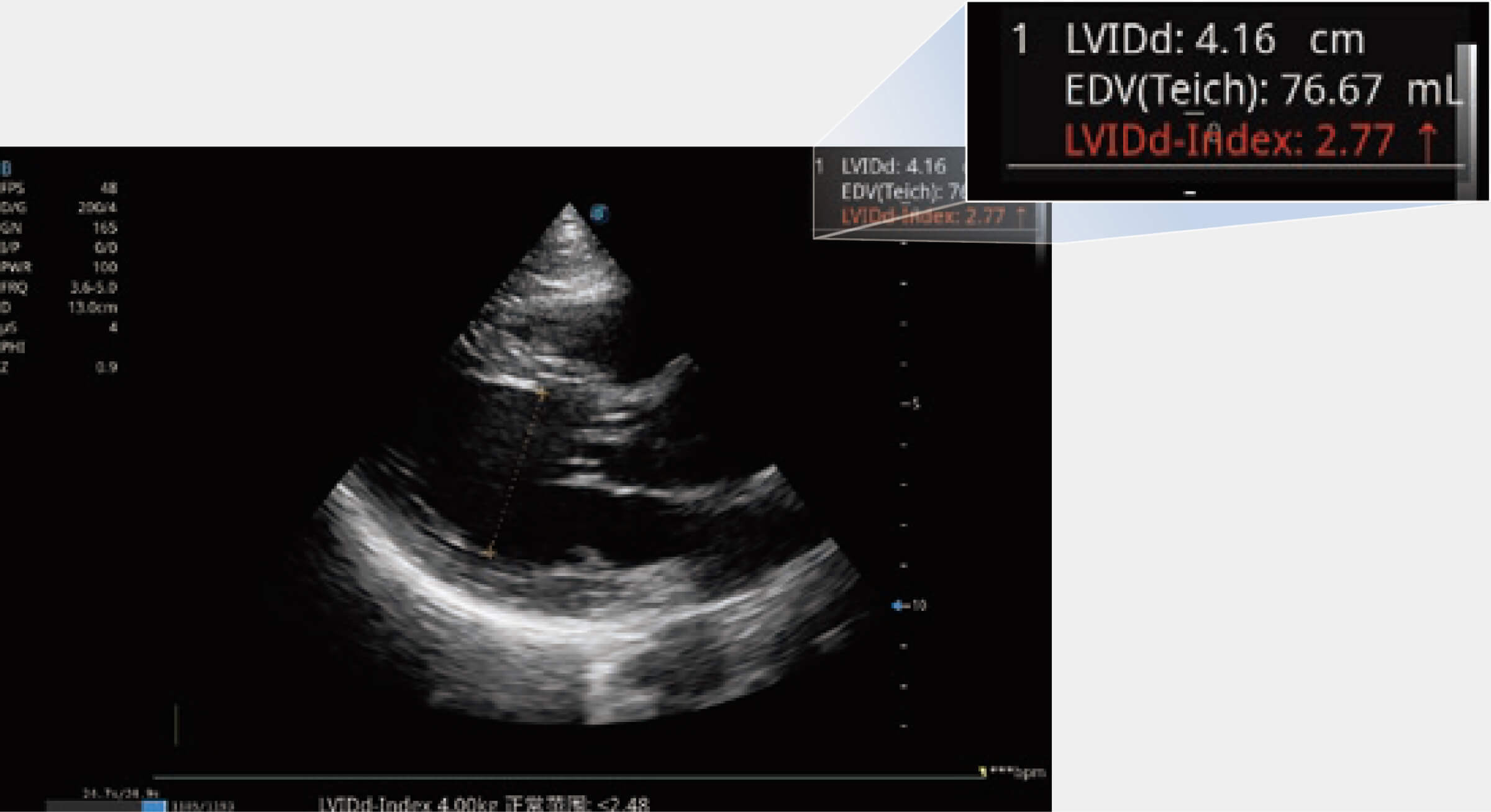 能夠基于左心室壁追蹤和辛普森法,自動(dòng)計(jì)算射血分?jǐn)?shù),支持多個(gè)可移動(dòng)點(diǎn)描跡,與手動(dòng)測(cè)量相比,極大節(jié)省了動(dòng)物醫(yī)生的時(shí)間和精力。