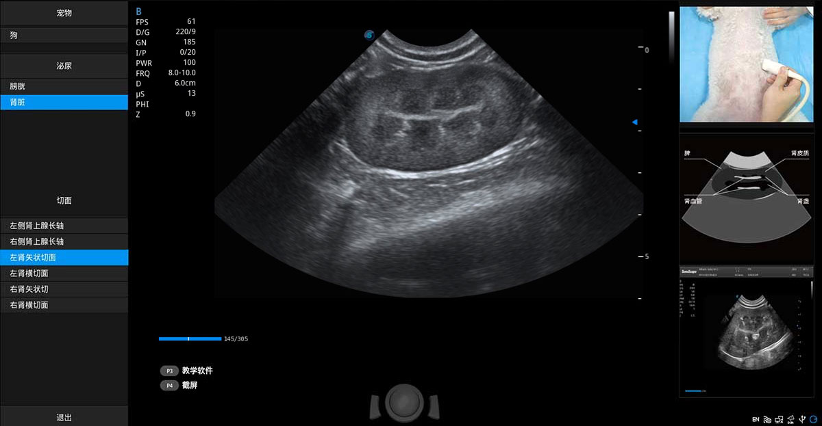 提供解剖示意圖、標(biāo)準(zhǔn)超聲圖像、掃查手法圖和操作者實(shí)時(shí)檢查圖像,指導(dǎo)操作者進(jìn)行標(biāo)準(zhǔn)切面的正確掃查。